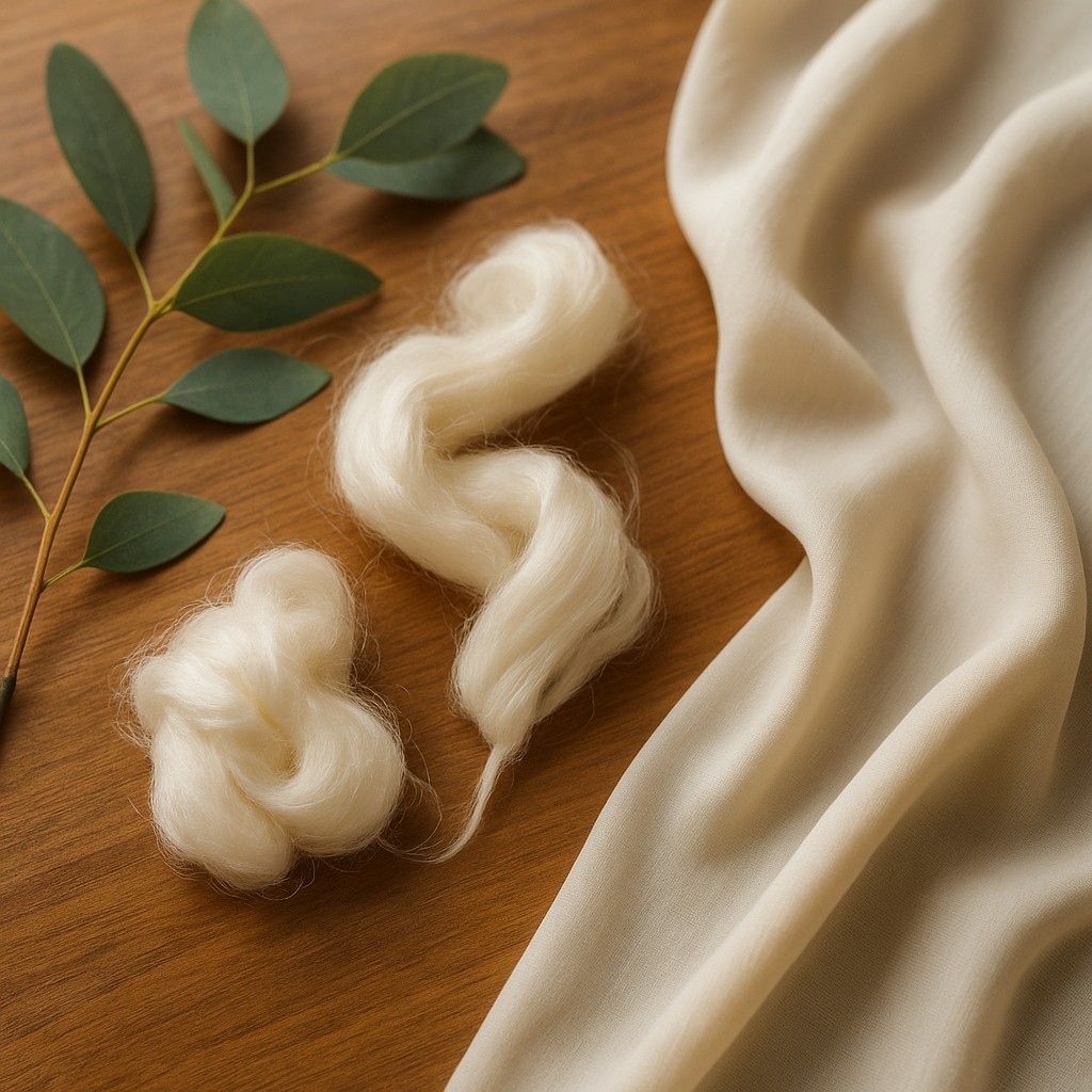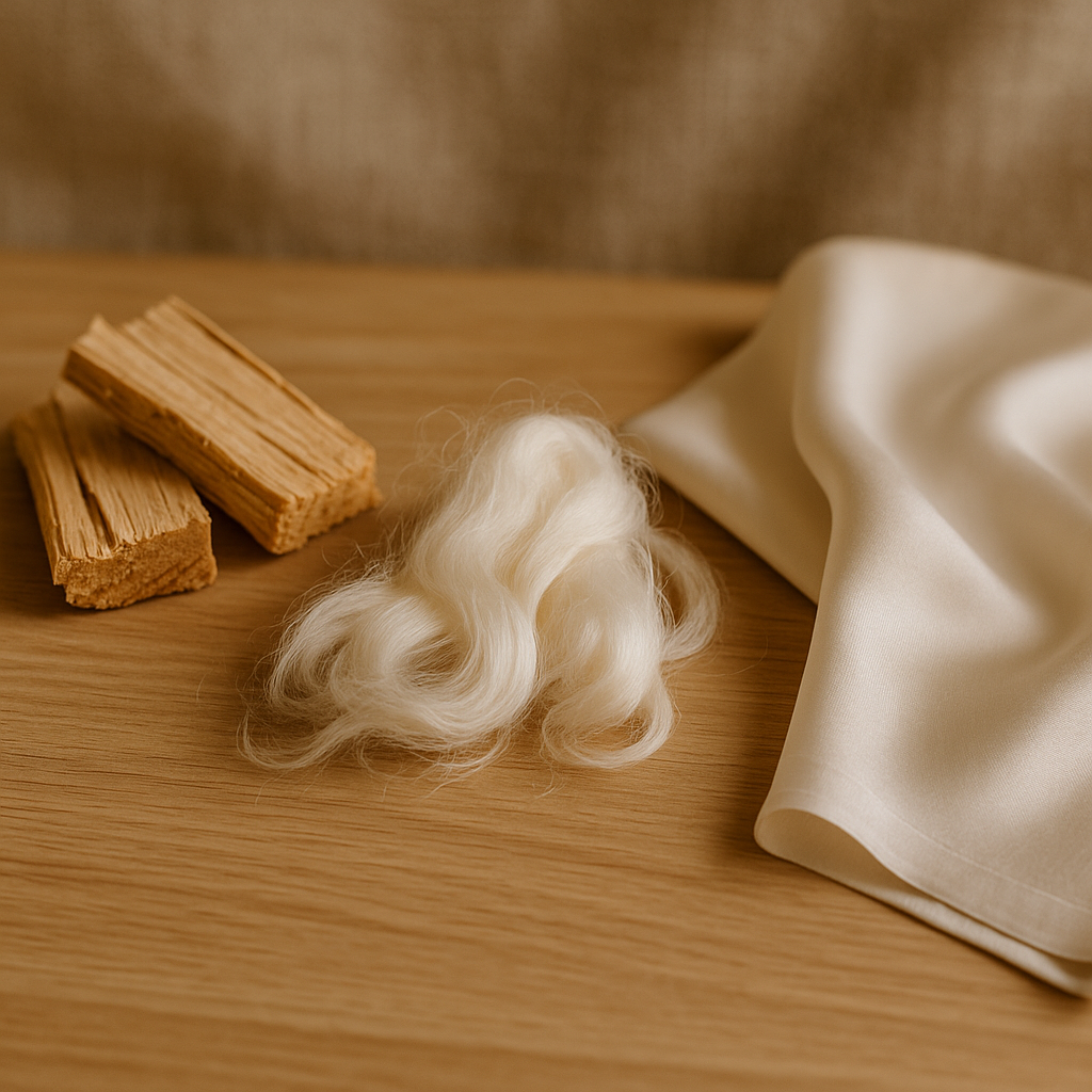 Tencel, auch bekannt als Lyocell, ist eine moderne Zellulosefaser, die aus nachhaltig gewonnenem Holz – meist Eukalyptus – hergestellt wird. Die Faser vereint Weichheit, Umweltfreundlichkeit und hohe Funktionalität.